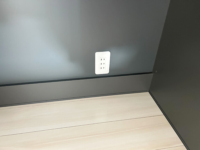 設置スペースにぴったり収まるサイズでしたが、既存のコンセント位置が干渉する状態だったので、取付に加えて、コンセント位置の調整も含めた施工を行いました。